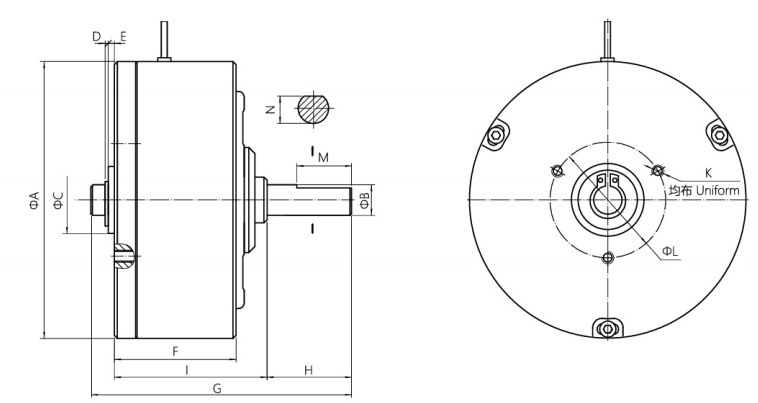 以自冷式磁滯制動器為基礎(chǔ),內(nèi)部加以水冷卻通道,通過水冷卻來吸收連續(xù)滑差產(chǎn)生的熱量。具有噪音低、功率大的優(yōu)點。廣泛應(yīng)用于測試負(fù)載和高速大張力放卷場合。(具體尺寸請來電索。9.20