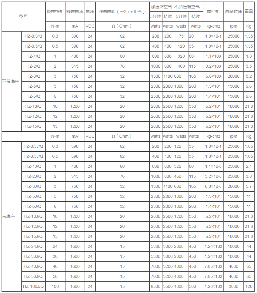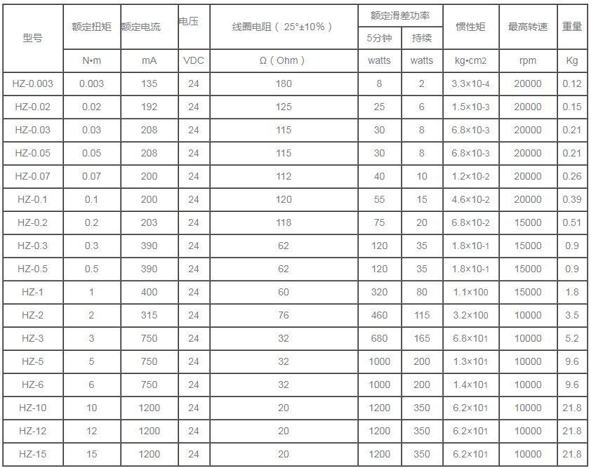 分為單出軸磁滯制動器,雙出軸磁滯制動器,空心軸磁滯制動器。 HZ自冷式磁滯制動器規(guī)格參數(shù)